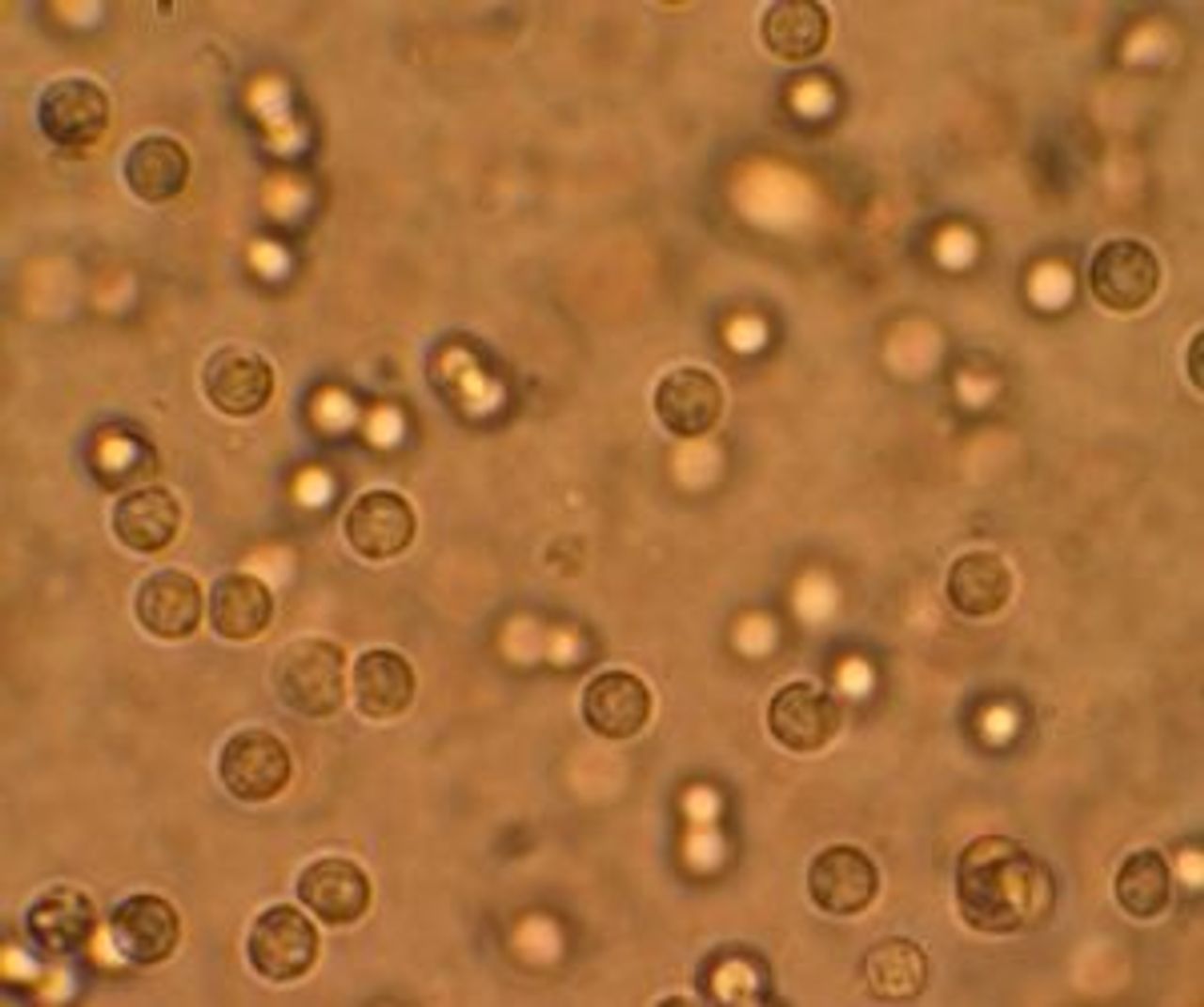 मूत्र पथ संक्रमण से पीड़ित व्यक्ति के मूत्र में बहुत सी श्वेत रक्त कणिकाएँ दिख रही हैं।