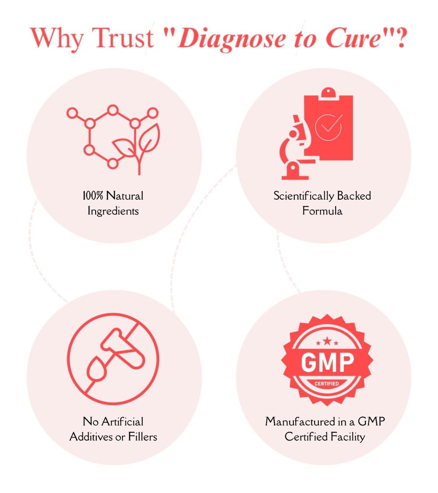 Diagnose to Cure Curcu-Rine is a premium curcumin supplement featuring 475 mg of 95% curcuminoids and 25 mg of Piperine (black pepper extract) for enhanced absorption