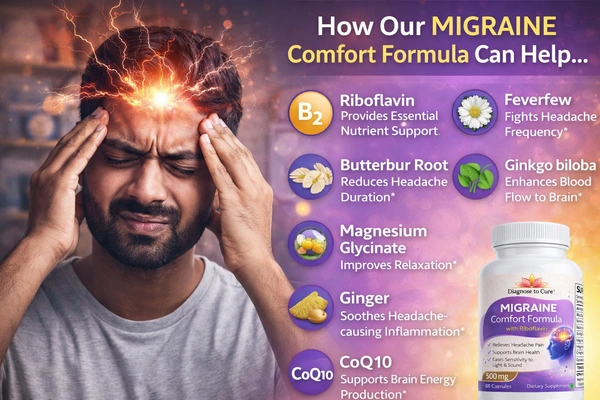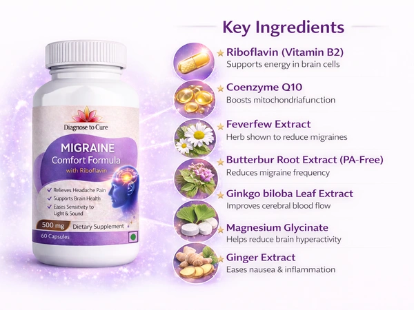 Migraine Comfort Formula with Riboflavin is a carefully designed blend of vitamins, minerals, and botanical extracts created to support head comfort, brain health, and overall neurological wellness.